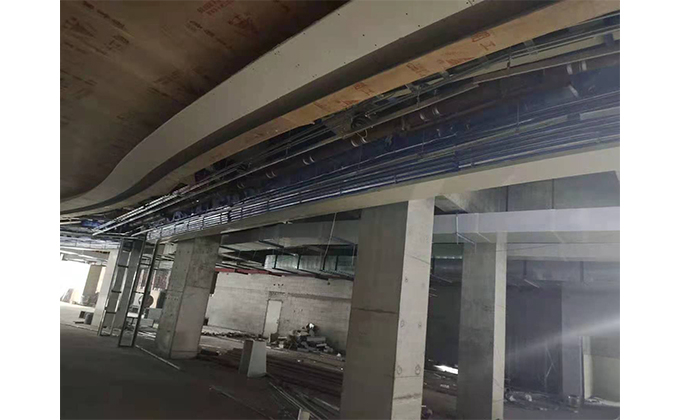 擋煙垂簾垂壁根據(jù)設(shè)計(jì)要求和現(xiàn)場(chǎng)實(shí)際情況采取如下施工順序:首先,搭設(shè)腳手架一放線一打眼--上脹栓一焊骨架。第二,吊件一安裝骨架…